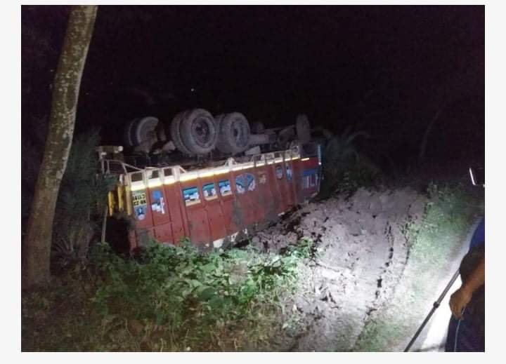 ভারতীয় পাথর বোঝাই ট্রাক খাদে: অভিযোগ বেনাপোল পৌরসভার লাইটপোস্ট মেইন সড়কে হেলে পড়ার।