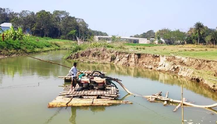 জামালপুরে প্রশাসনের নজর না থাকায় অবাধে চলছে ড্রেজার দিয়ে বালু উত্তোলন।