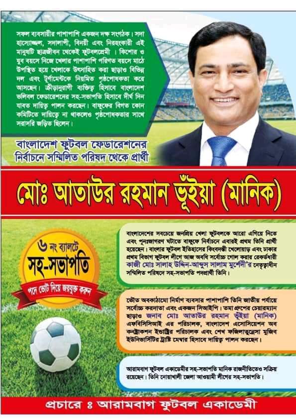 বাফুফের সহ-সভাপতি পদপ্রার্থী মানিক ফুটবলকে নিতে চায় স্বর্ণযুগে!।